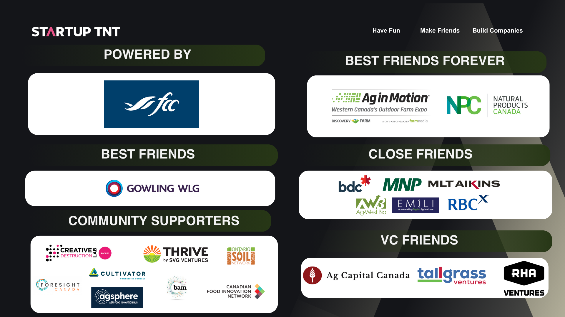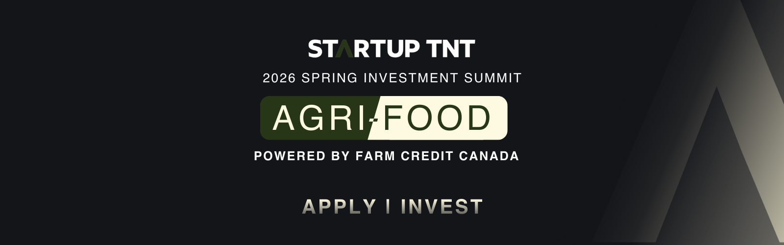 Applications for the Startup TNT Agri-Food Summit Powered By FCC Spring 2026. Looking for investment? Check out our other Summits